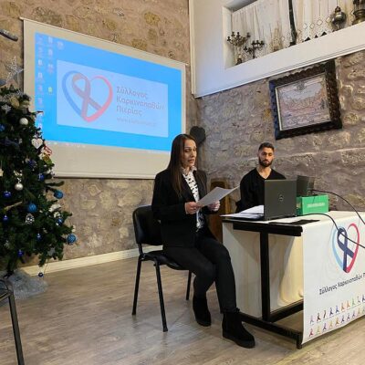 Δύο γενναίες γυναίκες, η κα Ελένη Καστανάρα Ταμίας του Συλλόγου μίλησε για τον κρίσιμο ρόλο του φροντιστή και η κα Ζωή Σερετίδου πρώην μέλος Δ.Σ. του Συλλόγου μας, κατέθεσε το προσωπικό της βίωμα ως ασθενής, αγγίζοντας τις καρδιές όλων.
